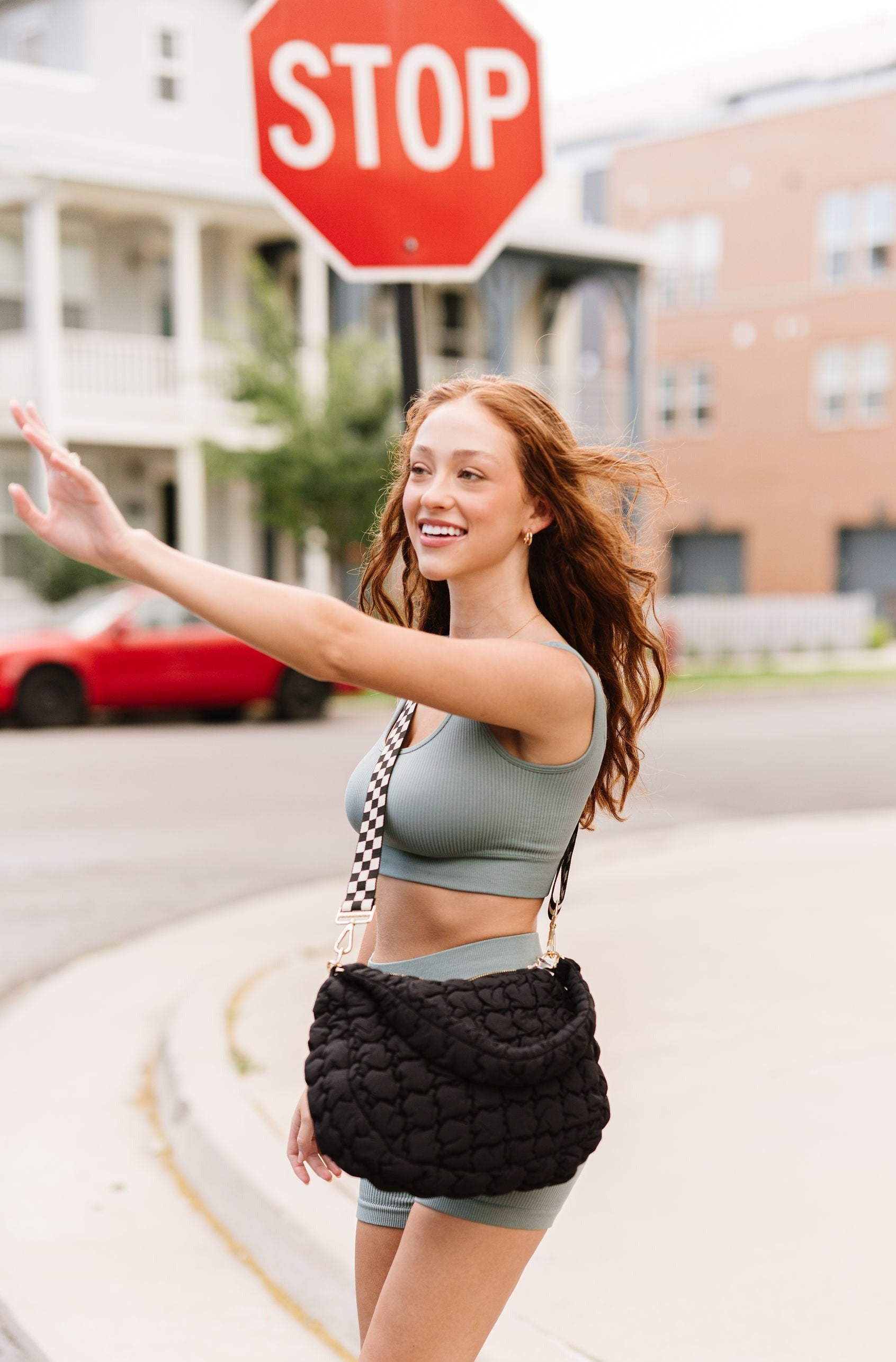 This versatile quilted purse fits a book, iPad, wallet, and other daily essentials, and the two pockets are perfect for stowing your keys, lip gloss, and earphones. Wipe-it-clean nylon material means this lightweight bag can withstand wear and still clean up nicely.