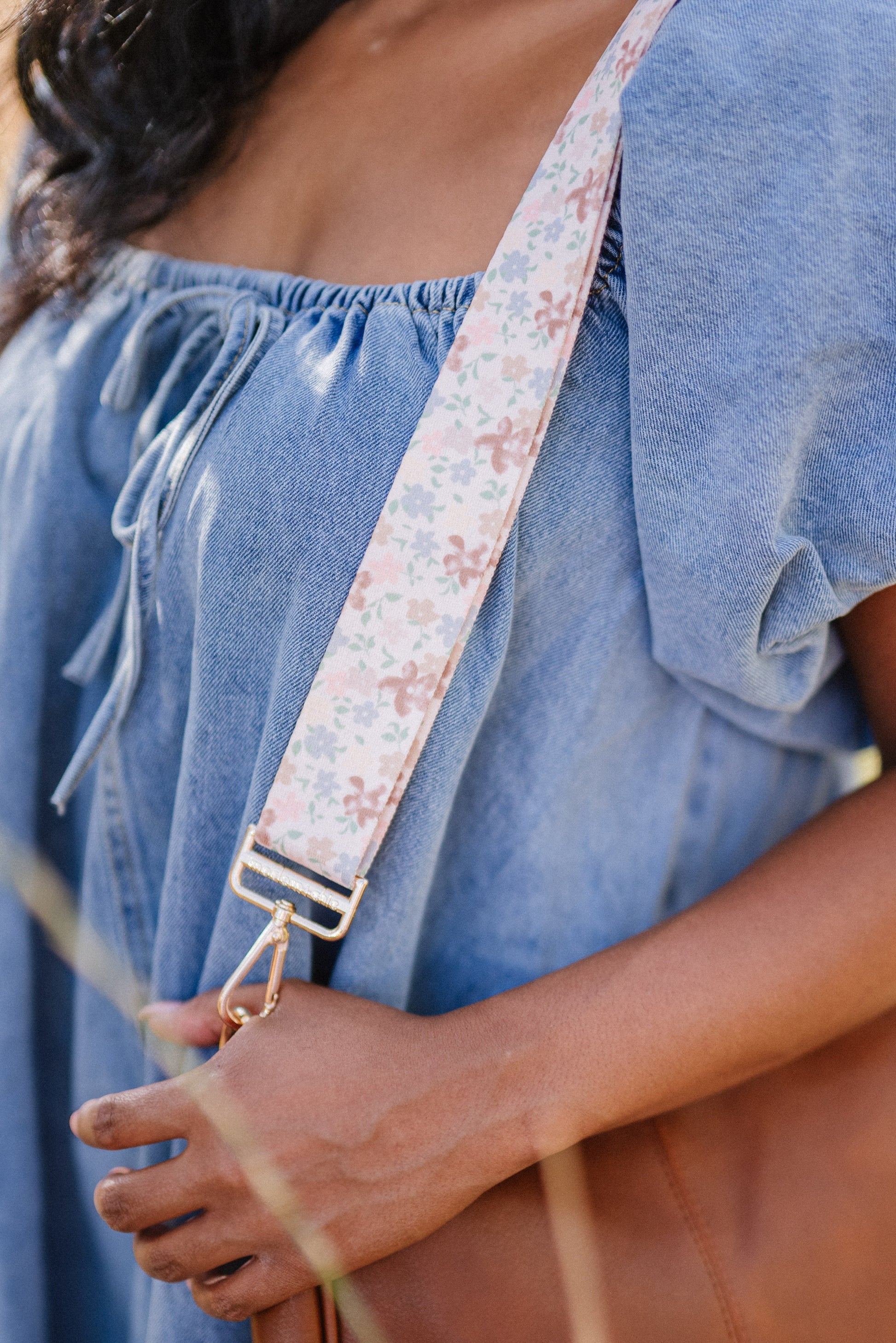 Elevate your style with our Boho Blooms Adjustable Bag Strap. Featuring a custom autumn inspired floral design in soft pastel hues, accented with delicate greenery. Perfect for the fall season, adding a touch of rustic charm to any outfit. Upgrade your bag game with this beautiful and versatile strap.