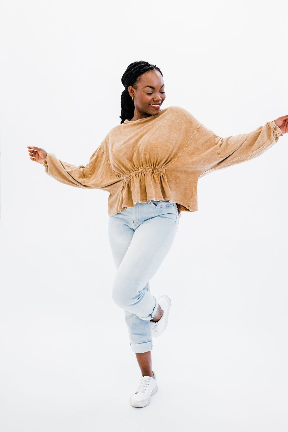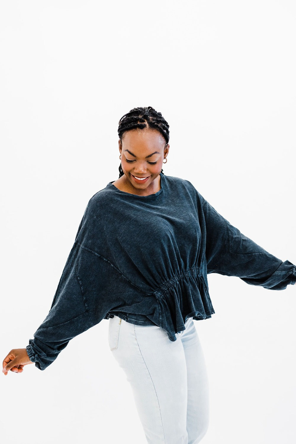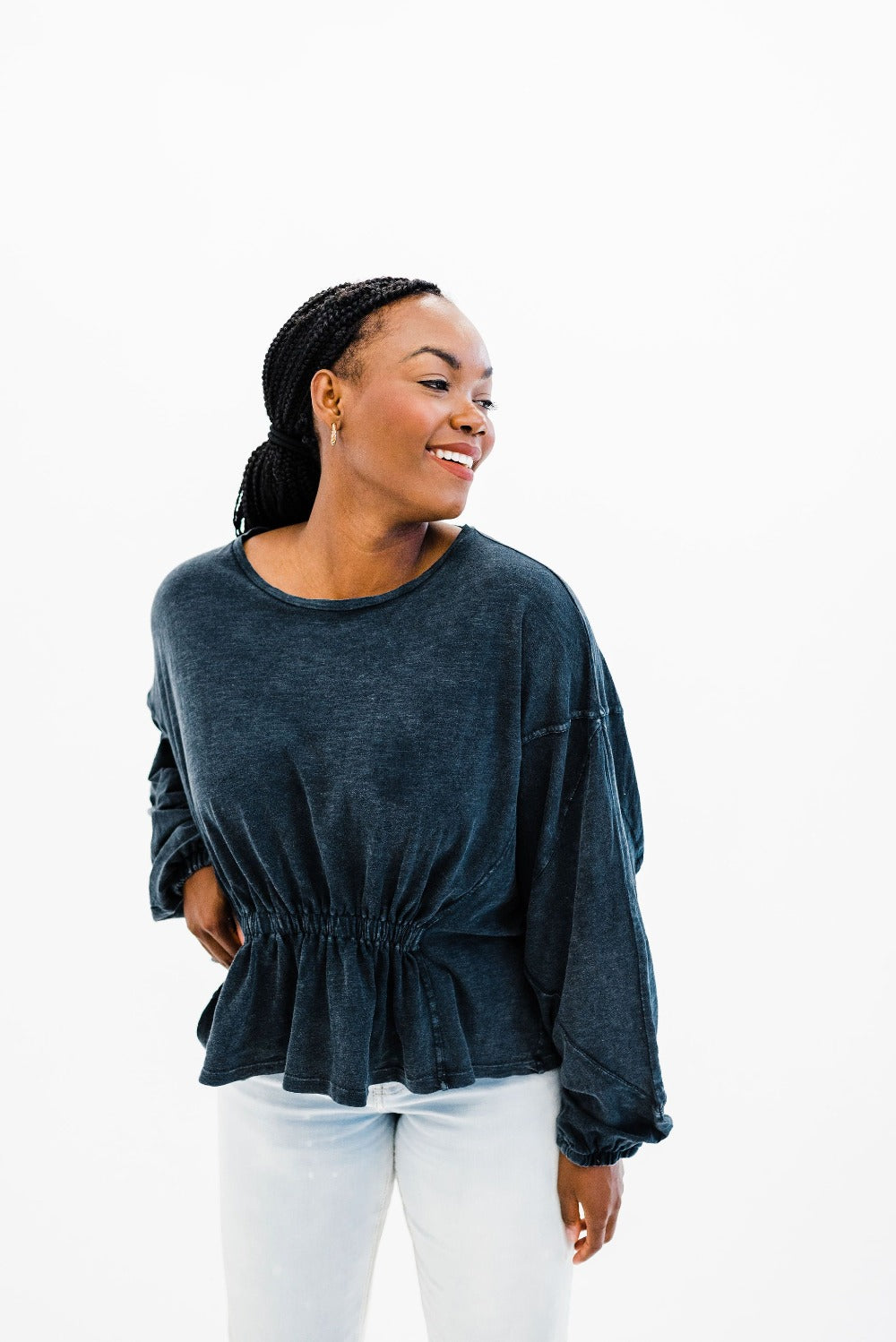 A subtle mineral wash, smocked waist, slight dolman sleeves, and keyhole closure - what’s not to love about the Briar Top? You need this unique top in your autumn and winter wardrobe ASAP!