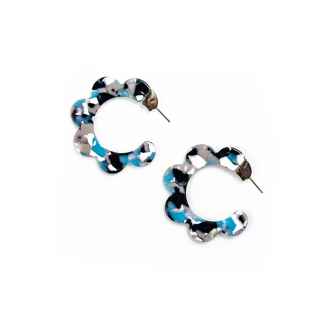 Lightweight acrylic tie dye earrings with a scalloped design and a post back.