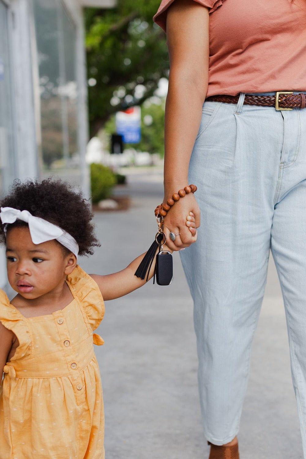 the ivy wooden keychain bracelet expands to fit any size wrist and comes with a hand-made, suede tassel in seven gorgeous colors.