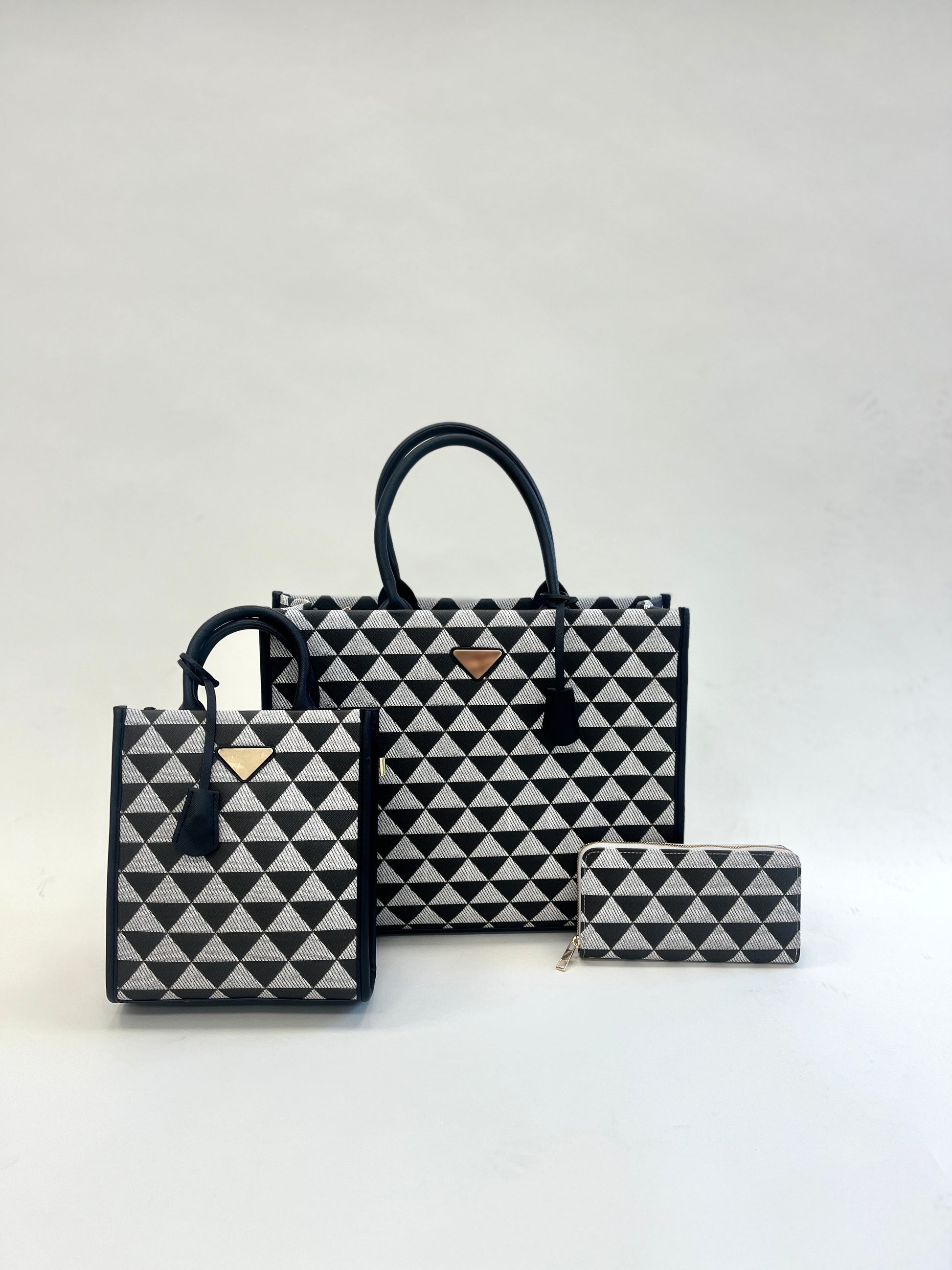 Imagine the thrill of getting a new bag. Now multiply that thrill by three! The Jacqueline set includes three incredible pieces: a large tote, a smaller tote, and a matching wallet. This luxe set is made from soft and durable vegan leather and is complete with glossy gold hardware and an adjustable strap that can be worn with either bag.