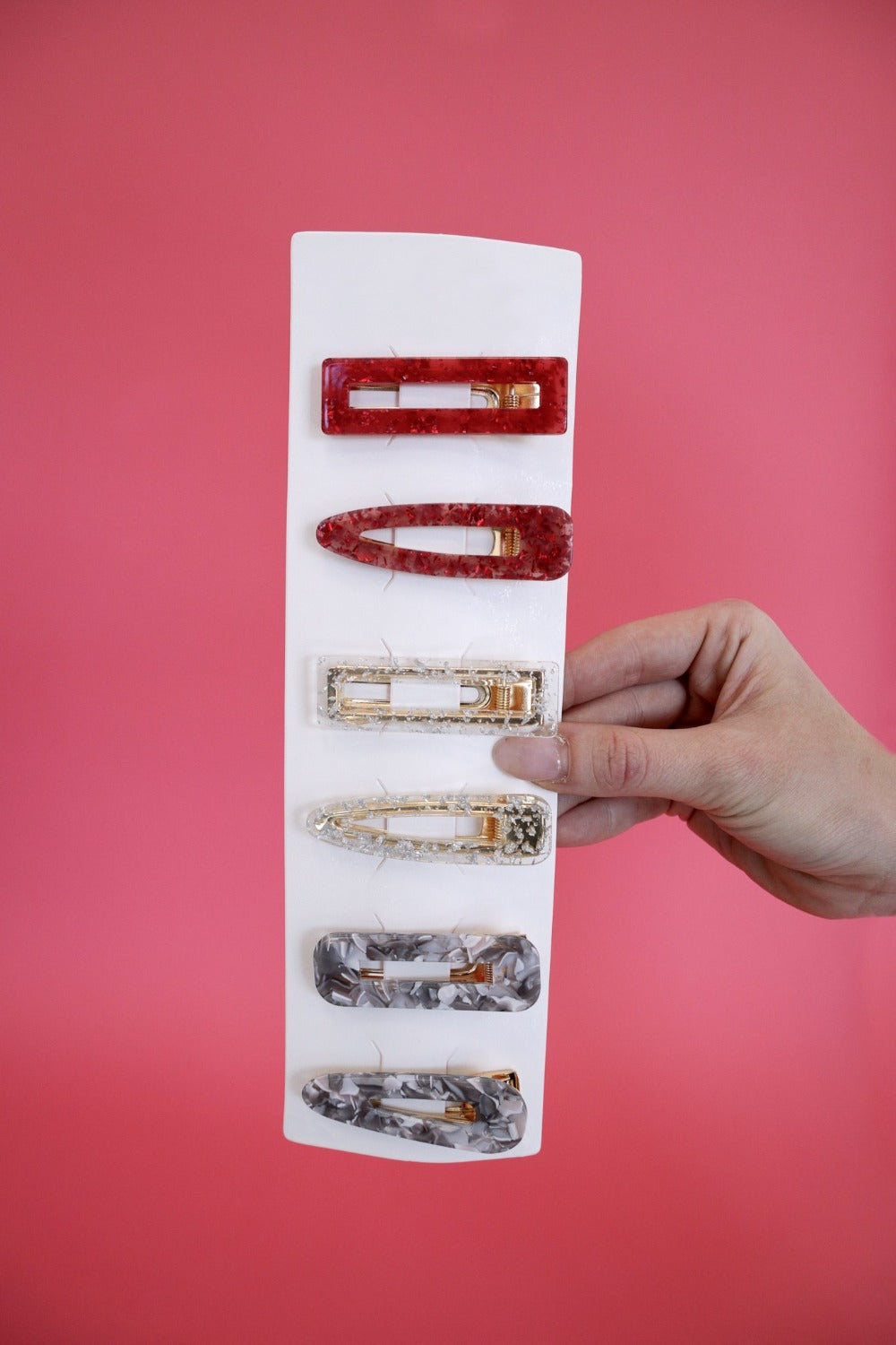 if you have a hard time choosing between equally cute hair accessories, the maggie hair clip set is for you. these playful barrettes come in three patterns and shapes per set, so that you can mix and match to your heart’s content!